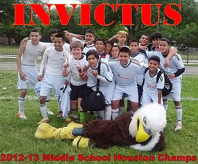 May 2, 2013: Congratulations to the Middle School Boys Soccer team. Today the team became Houston Middle School champions by defeating Johnston Middle School by the score of 2-1. The team went undefeated the whole season and was never beaten. This is a really good team and it will only get better next year.